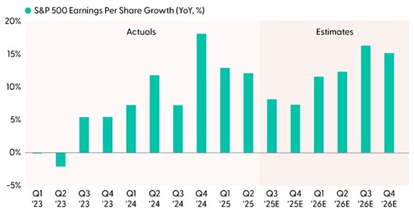 Looking ahead, the combination of AI investment, tech-driven productivity gains, and supportive fiscal policy could potentially enable earnings to grow at a double-digit clip in 2026 and keep this bull market well supported.